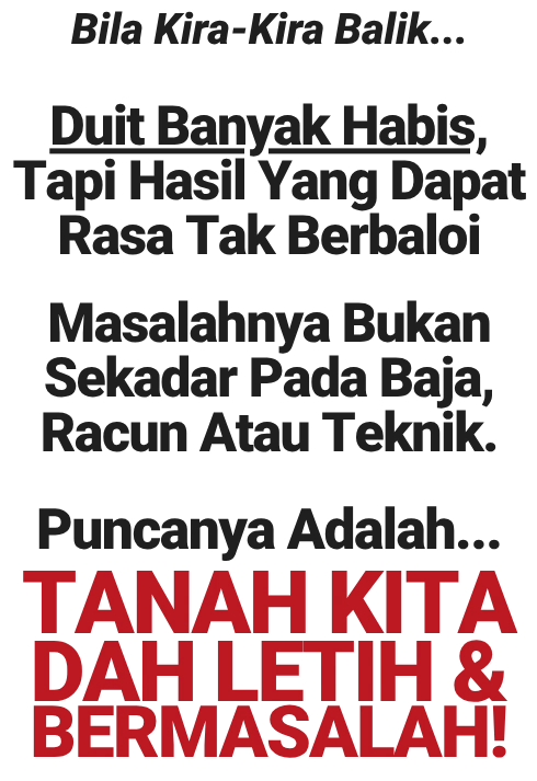 Masalah besar pertanian di Malaysia bukan kekurangan NPK, tetapi ketidakcekapan tanah menyerapnya.